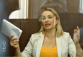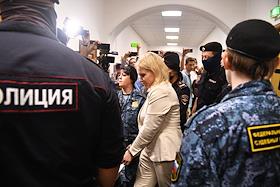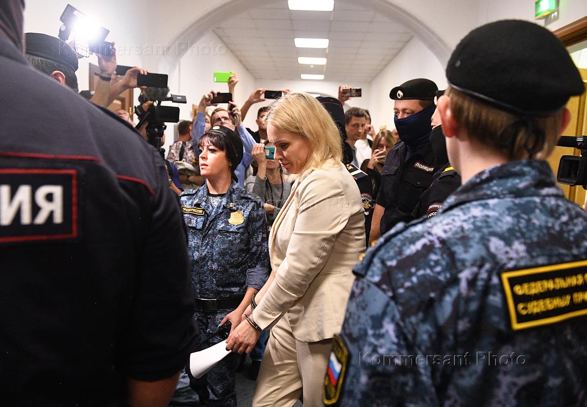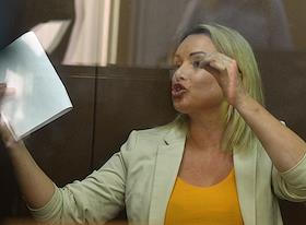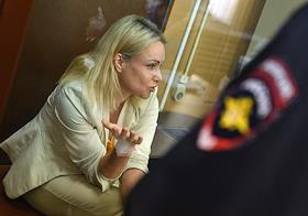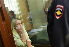Заседание по делу бывшего редактора "Первого канала" Марины Овсянниковой, обвиняемой в дискредитации российской армии, в Басманном районном суде. Бывший редактор "Первого канала" Марина Овсянникова во время заседания суда.