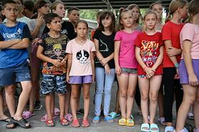 Вынужденные переселенцы Донбасса в пункте временного размещения (ПВР) "Ромашка" в поселке Золотая Коса.