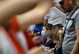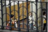 Виды Москвы в период подъема заболеваемости коронавирусной инфекцией. Жанровая фотография. Ситуация в московском метрополитене. Пассажиры на станции "Библиотека имени Ленина" Сокольнической линии метро.