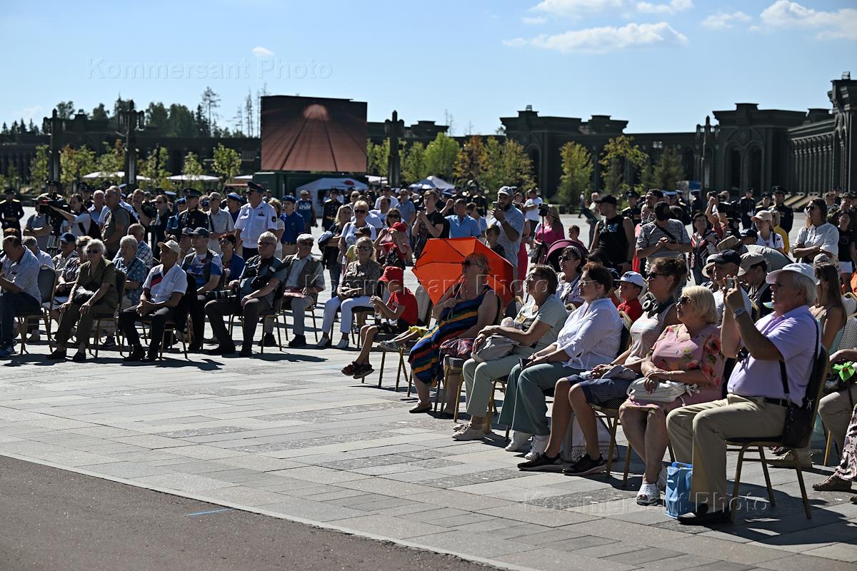 Solemn events dedicated to the 110th anniversary of the formation of the Russian Air Force in the "Patriot" Military-Patriotic Park of Culture and Recreation of the Russian Armed Forces. Spectators during a festive concert.