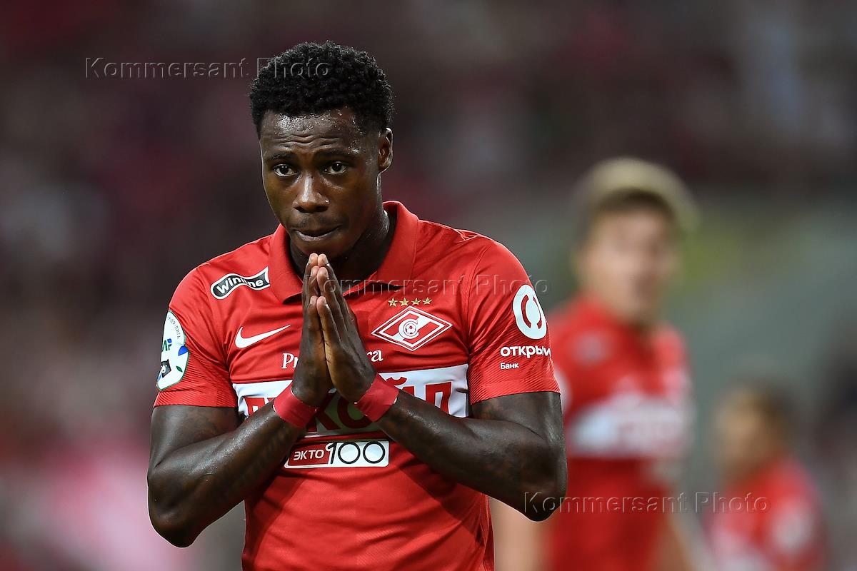 Russian Premier League (RPL). MIR - Russian Football Championship 2022/2023. Round 5 Match between the teams "Spartak" (Moscow) - "Sochi" (Sochi) at the stadium "Otkritie Arena". Spartak team player Quincy Promes (left) during a match.