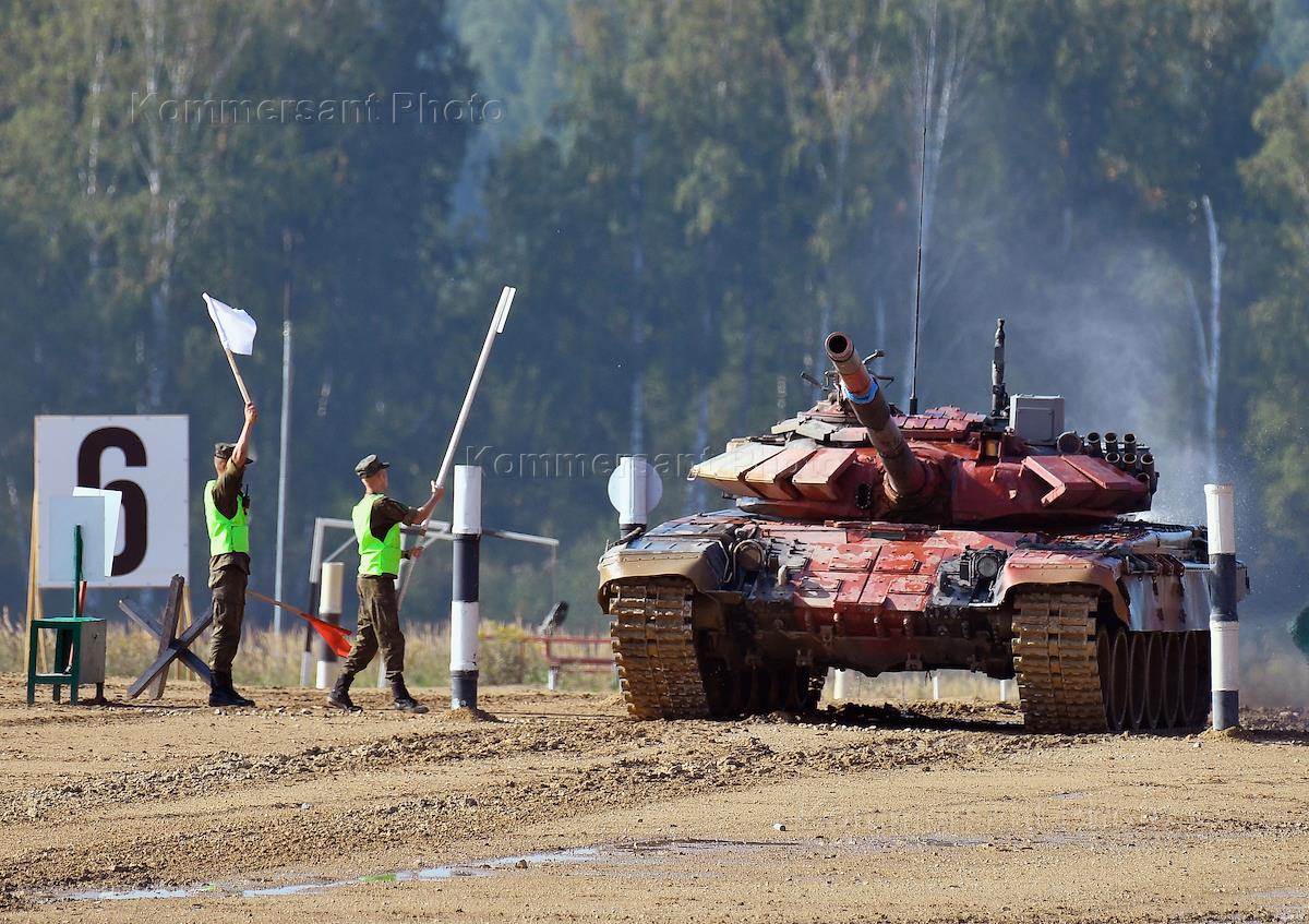 Международный военно-технический форум "Армия-2022" и Армейские международные игры. Конкурс "Танковый биатлон-2022" на военном полигоне "Алабино". Танк Т-72Б3 команды военнослужащих Вооруженных Сил Азербайджана во время соревнований танковых экипажей.