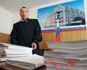 Судья Арбитражного суда Москвы Павел Марков во время заседания, на котором рассматривалось дело о банкротстве нефтяной компании (НК) "ЮКОСа".