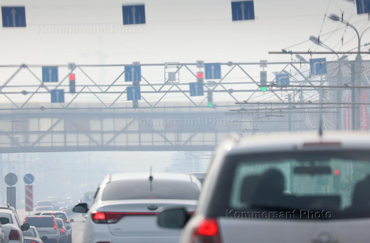 Жанровая фотография. Дым и смог от природных лесных пожаров в Рязанской области над городом.