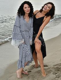 Annual Russian short film festival "Koroche". Party in the village of Yantarny as part of the festival. Actress Lyubov Tolkalina (left) and her daughter Maria Konchalovskaya (right) at a party.