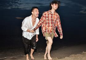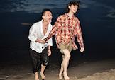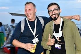 X annual Russian film festival of short films "Koroche". Party in the village of Yantarny as part of the festival. Actors Mark Eidelstein (left) and Nikita Pavlenko (right) at a party.