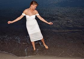 Annual Russian short film festival "Koroche". Party in the village of Yantarny as part of the festival. Artist Maria Konchalovskaya at a party.