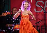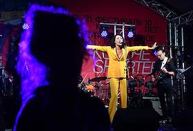 X annual Russian film festival of short films "Koroche". Party in the village of Yantarny as part of the festival. Actress Yulia Volkova performing at a party.