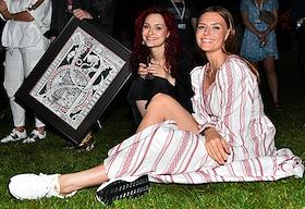 X annual Russian film festival of short films "Koroche". Party in the village of Yantarny as part of the festival. Actresses Yulia Volkova (left) and Yekaterina Volkova (right) at a party.