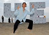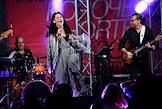 Annual Russian short film festival "Koroche". Party in the village of Yantarny as part of the festival. Actress Alena Babenko (left) performing at a party.