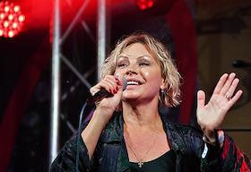 Annual Russian short film festival "Koroche". Party in the village of Yantarny as part of the festival. Actress Alena Babenko performing at a party.