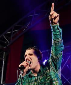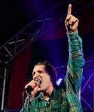 X annual Russian film festival of short films "Koroche". Party in the village of Yantarny as part of the festival. Actor Nikita Frolov performing at a party.