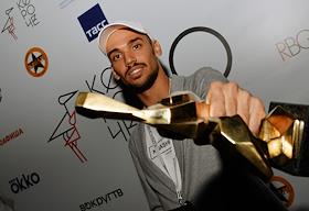 X ежегодный российский российский кинофестиваль короткометражного кино "Короче". Церемония закрытия в Центральном парке. Актер Марк Эйдельштейн на церемонии.