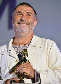 X ежегодный российский российский кинофестиваль короткометражного кино "Короче". Церемония закрытия в Центральном парке. Режиссер Сергей Анфиногентов на церемонии.