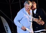 X ежегодный российский российский кинофестиваль короткометражного кино "Короче". Церемония закрытия в Центральном парке. Оператор Сергей Астахов (слева) на церемонии.