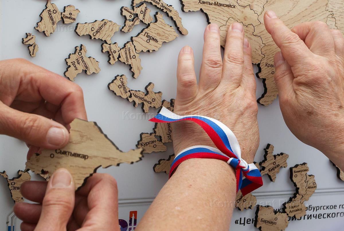 Празднование Дня государственного флага России. Жанровая фотография. Посетители в интерактивной зоне Петропавловской крепости во время праздничных мероприятий.