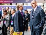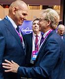 IX международный форум технологического развития "Технопром-2022" в Международном выставочном комплексе "Новосибирск Экспоцентр". Тема форума "Технологический суверенитет и устойчивое развитие России". Представитель в Совете Федерации России от законодательного (представительного) органа государственной власти Новосибирской области Александр Карелин (слева) на форуме.