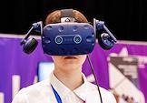 Церемония открытия международного форума "Технопром". Девушка в очках виртуальной реальности.