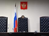 Заседание по уголовному делу в отношении бывшего советника отдела Главного управления вооружения Вооруженных Сил России Юрия Здравило и советника отдела департамента Министерства обороны России по обеспечению гособоронзаказа Виталия Ликучева, обвиняемых в получении взятки в особо крупном размере, в Мещанском районном суде. Жанровая фотография. Пустые кресла судей в зале заседаний.