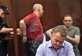 Заседание по уголовному делу в отношении бывшего советника отдела Главного управления вооружения Вооруженных Сил России Юрия Здравило и советника отдела департамента Министерства обороны России по обеспечению гособоронзаказа Виталия Ликучева, обвиняемых в получении взятки в особо крупном размере, в Мещанском районном суде. Бывший советник отдела Главного управления вооружения Вооруженных Сил России Юрий Здравило (второй слева) и советник отдела департамента Министерства обороны России по обеспечению гособоронзаказа Виталий Ликучев (справа) во время заседания суда.