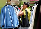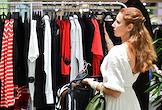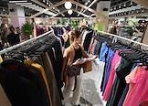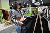 Секция московских дизайнеров Created in Moscow открылась в универмаге "Телеграф" в торговом центре "Афимолл Сити". Жанровая фотография. Покупательница в торговом зале.