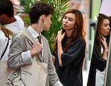 Секция московских дизайнеров Created in Moscow открылась в универмаге "Телеграф" в торговом центре "Афимолл Сити". Жанровая фотография. Покупатели в торговом зале.