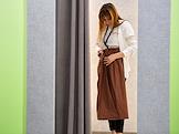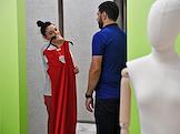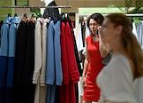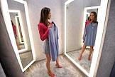 Секция московских дизайнеров Created in Moscow открылась в универмаге "Телеграф" в торговом центре "Афимолл Сити". Жанровая фотография. Покупательница в примерочной.