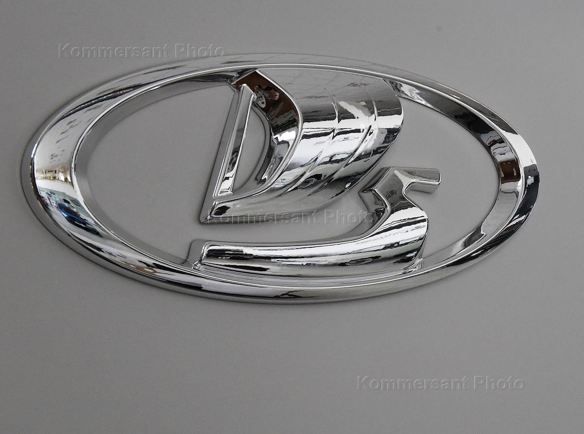 Автосалон "Лада" на Ленинградском шоссе в городе Химки. Жанровая фотография. Эмблема АО "АвтоВАЗ".