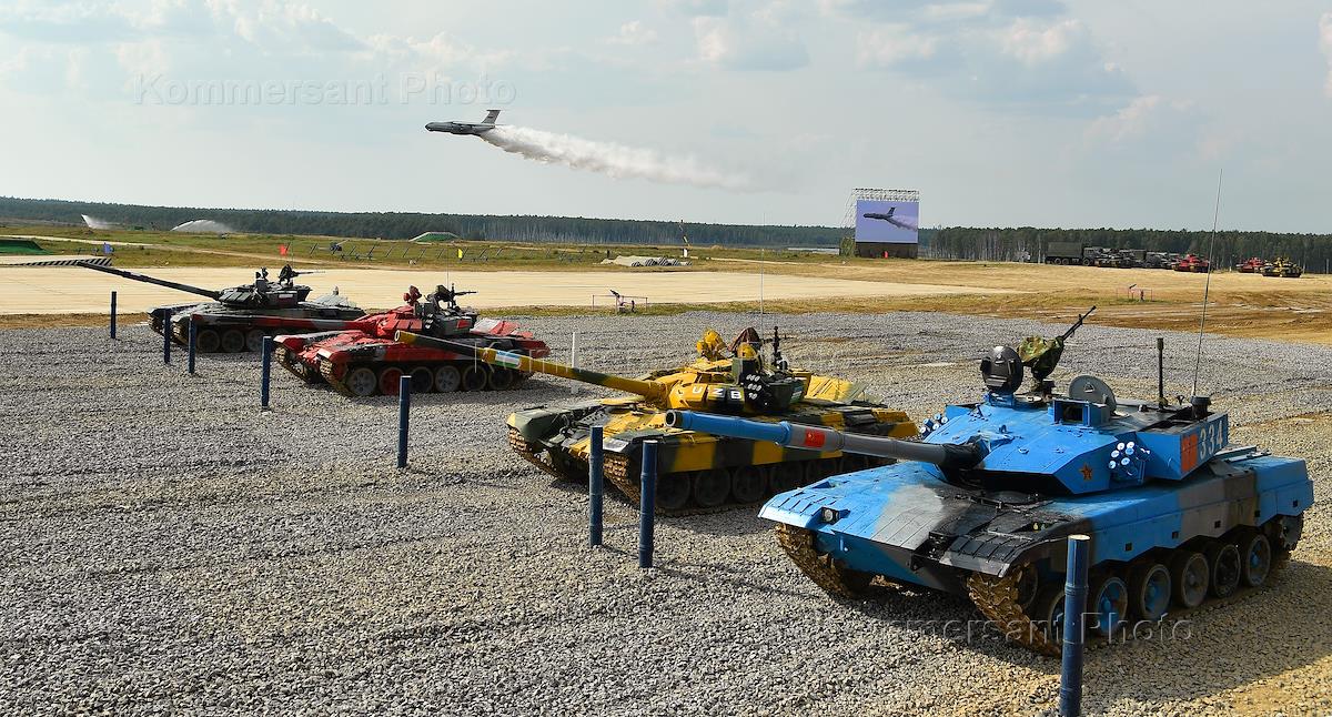 Армейские международные игры - 2022. Конкурс "Танковый биатлон". Финальный заезд соревнований танковых экипажей на военном полигоне "Алабино". Танк Т-96Б экипажа Китая во время соревнований.
