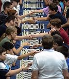 Открытый шахматный фестиваль "Петербургское лето – 2022". Этап Всероссийских соревнований 2022 года по блицу "БЛИЦ Гран-При России" - турнир "Мемориал В.Л.Корчного". Турнир прошел в отеле "Азимут". Жанровая фотография.