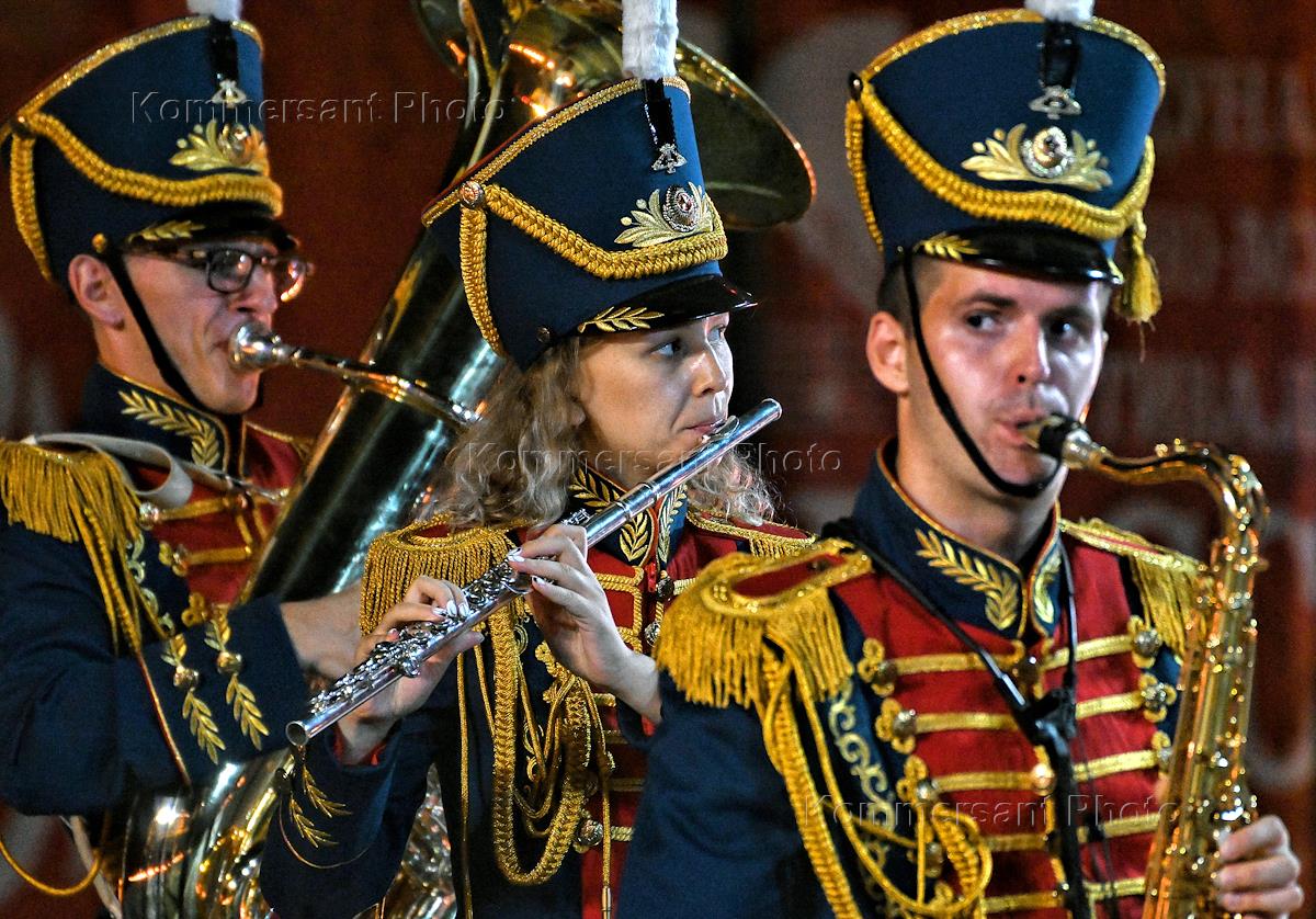 XV Международный военно-музыкальный фестиваль "Спасская башня" на Красной площади. Церемония открытия фестиваля. Образцово-показательный оркестр Вооруженных Сил Республики Беларусь.