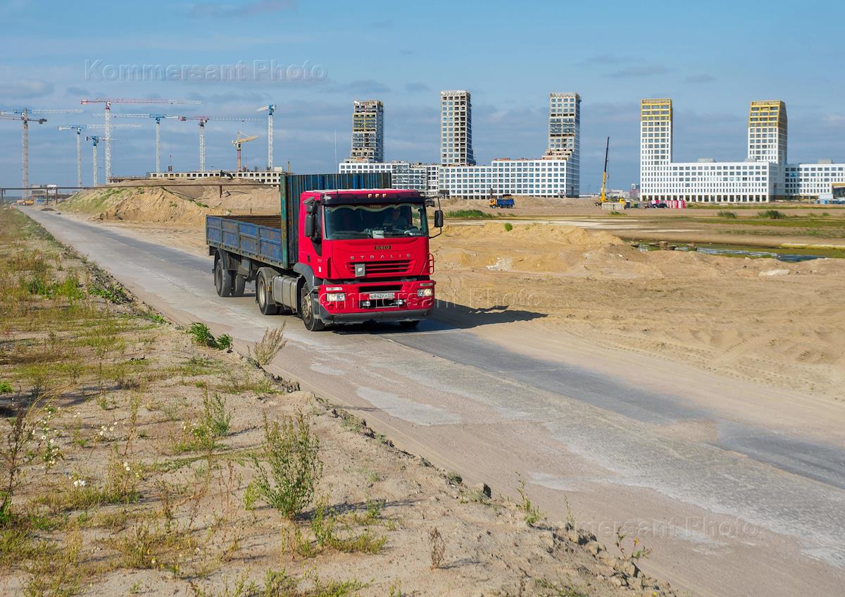 Строительство жилых домов на намывных территориях Васильевского острова. Жанровая фотография.