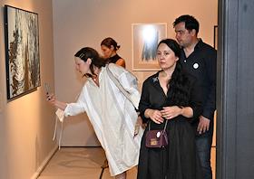 Церемония открытия выставки "Котел алхимика. Осязательный взгляд и незрительное восприятие". Часть первая в Галерее искусства стран Европы и Америки XIX–XX веков Государственного музея изобразительных искусств (ГМИИ) имени А.С.Пушкина. Посетители на церемонии.