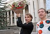 Церемония открытия выставки "Котел алхимика. Осязательный взгляд и незрительное восприятие". Часть первая в Галерее искусства стран Европы и Америки XIX–XX веков Государственного музея изобразительных искусств (ГМИИ) имени А.С.Пушкина. Начальник отдела междисциплинарных проектов ГМИИ им А.С.Пушкина Евгения Киселева (слева) и куратор выставки, заведующая отделом искусства стран Европы и Америки XIX-XX веков Александра Данилова (справа) перед началом церемонии.