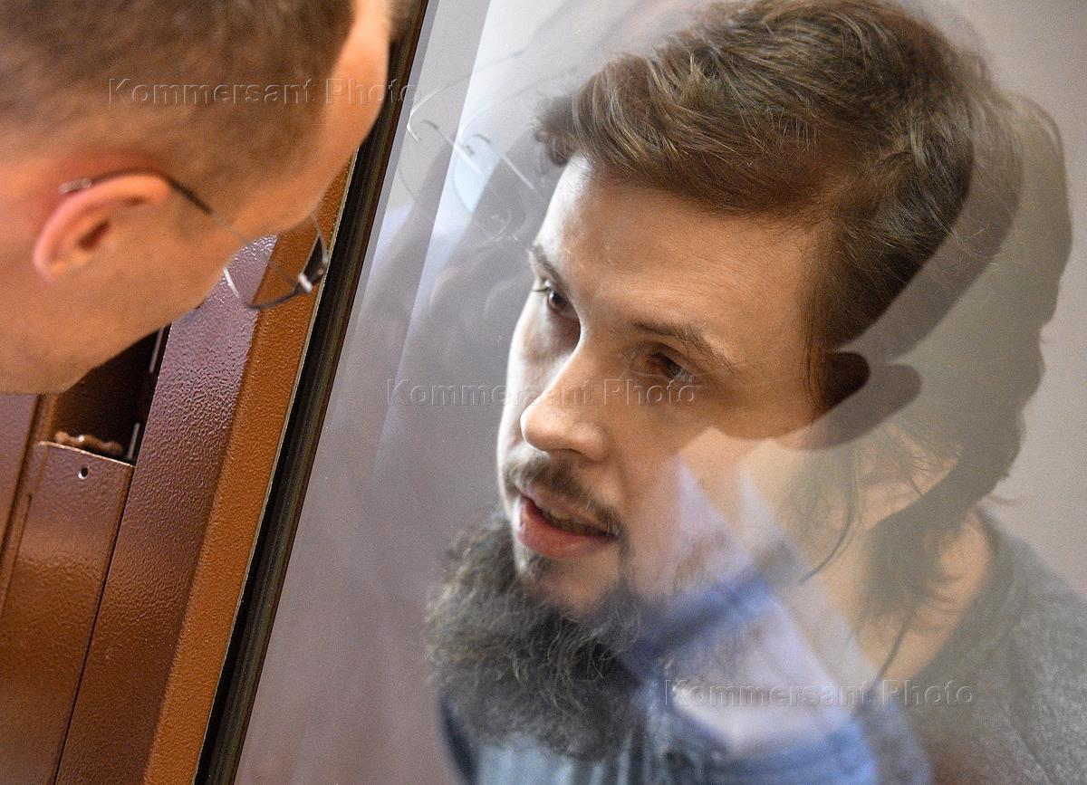Рассмотрение дело бывшего схиигумена Екатеринбургской епархии Русской православной церкви Сергия (Николая Романова) и его помощника Всеволода Могучева, обвиняемых в экстремизме, в Бабушкинском районном суде. Помощник бывшего схиигумена Екатеринбургской епархии Русской православной церкви Сергия (Николая Романова) Всеволод Могучев во время заседания суда.