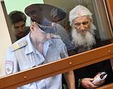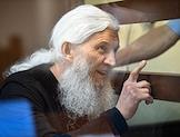 Рассмотрение дело бывшего схиигумена Екатеринбургской епархии Русской православной церкви Сергия (Николая Романова) и его помощника Всеволода Могучева, обвиняемых в экстремизме, в Бабушкинском районном суде. Бывший схиигумен Екатеринбургской епархии Русской православной церкви Сергий (Николая Романова) во время заседания суда.