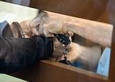 Рассмотрение дело бывшего схиигумена Екатеринбургской епархии Русской православной церкви Сергия (Николая Романова) и его помощника Всеволода Могучева, обвиняемых в экстремизме, в Бабушкинском районном суде. Жанровая фотография. Наручники на руках участника суда.