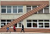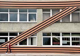 Виды Калининграда. Жанровая фотография. Знак "Z" в поддержку специальной военной операции Вооруженных Сил России на Украине на фасаде Дворца спорта "Юность".