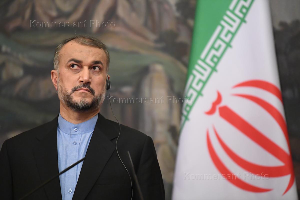Negotiations between Russian Foreign Minister Sergei Lavrov and Foreign Minister of the Islamic Republic of Iran Hossein Amir-Abdollahian at the Reception House of the Russian Foreign Ministry. Russian Foreign Minister Sergei Lavrov (right) and Foreign Minister of the Islamic Republic of Iran Hossein-Amir Abdollahian (left) before a press conference following the negotiations.