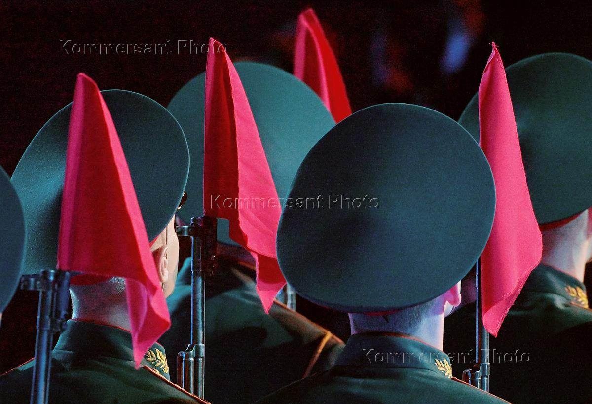 XV Международный военно-музыкальный фестиваль "Спасская башня" на Красной площади. Военнослужащие роты почетного караула Вооруженных Сил Белоруссии во время выступления на фестивале.