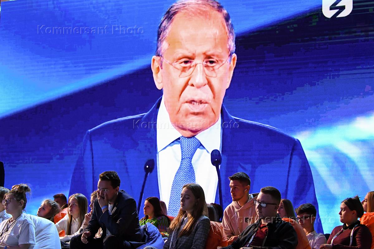 Федеральный просветительский марафон "Знание. Сила" Российского общества "Знание" в Московском концертном зале "Зарядье". Министр иностранных дел России Сергей Лавров во время выступления.
