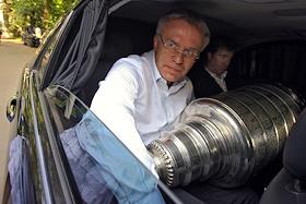 Руководитель Федерального агентства по физической культуре и спорту Вячеслав Фетисов после церемонии представления главного приза НХЛ - "Кубка Стэнли". Церемония прошла в фитнес-клубе Gold's Gym.