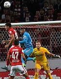Российская Премьер-Лига (РПЛ). МИР - Чемпионат России по футболу 2022/2023. 8 тур. Матч между командами "Спартак" (Москва) - "Зенит" (Санкт-Петербург) на стадионе "Открытие Арена". Игрок команды "Зенит" Малком (слева) и вратарь команды "Спартак" Александр Максименко (справа) во время матча.