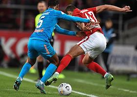 Российская Премьер-Лига (РПЛ). МИР - Чемпионат России по футболу 2022/2023. 8 тур. Матч между командами "Спартак" (Москва) - "Зенит" (Санкт-Петербург) на стадионе "Открытие Арена". Игрок команды "Спартак" Кристофер Мартинс Перейра (в центре) во время матча.
