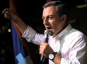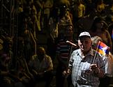 Митинг армянского оппозиционного "Движения сопротивление", посвященный Дню независимости Арцаха, на площади Франции. Один из лидеров "Движения сопротивления", бывший вице-спикер Армении Ишхан Сагателян во время выступления на митинге.