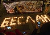 Акция памяти жертв теракта произошедшего в школе №1 города Беслана 1 сентября 2004 года в Санкт-Петербурге на Малой Садовой улице. Участники акции зажигают свечи и выкладывают ими слово "Беслан".