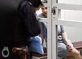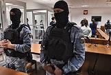 Оглашение приговора калининградским врачам Элине Сушкевич и Елене Белой на основе обвинительного вердикта присяжных по делу об убийстве недоношенного младенца в Московском областном суде. Сотрудники полиции во время заседания суда.