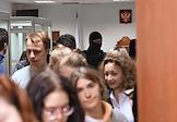 Оглашение приговора калининградским врачам Элине Сушкевич и Елене Белой на основе обвинительного вердикта присяжных по делу об убийстве недоношенного младенца в Московском областном суде. Слушатели после заседания.