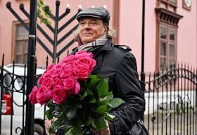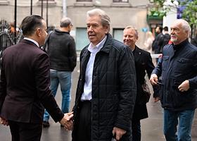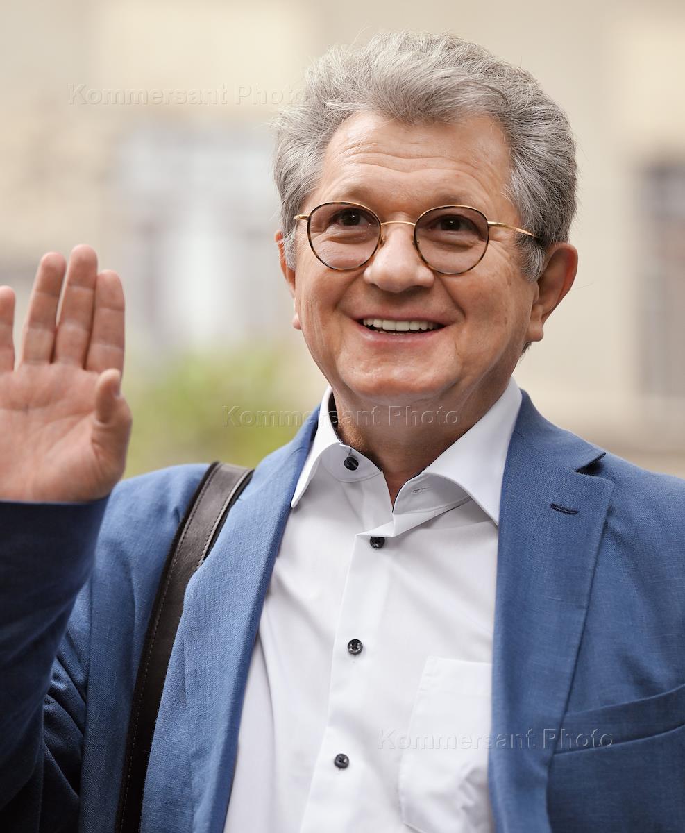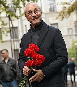 Церемония открытия памятника народным артистам СССР, актерам Государственного академического театра имени Евг. Вахтангова Василию Лановому, Владимиру Этушу и Юрию Яковлеву у Симоновской сцены Вахтанговского театра. Режиссер Владимир Иванов на церемонии.