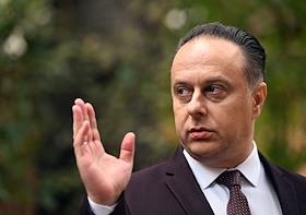 Церемония открытия памятника народным артистам СССР, актерам Государственного академического театра имени Евг. Вахтангова Василию Лановому, Владимиру Этушу и Юрию Яковлеву у Симоновской сцены Вахтанговского театра. Директор Государственном академическом театре имени Евг. Вахтангова Кирилл Крок на церемонии.